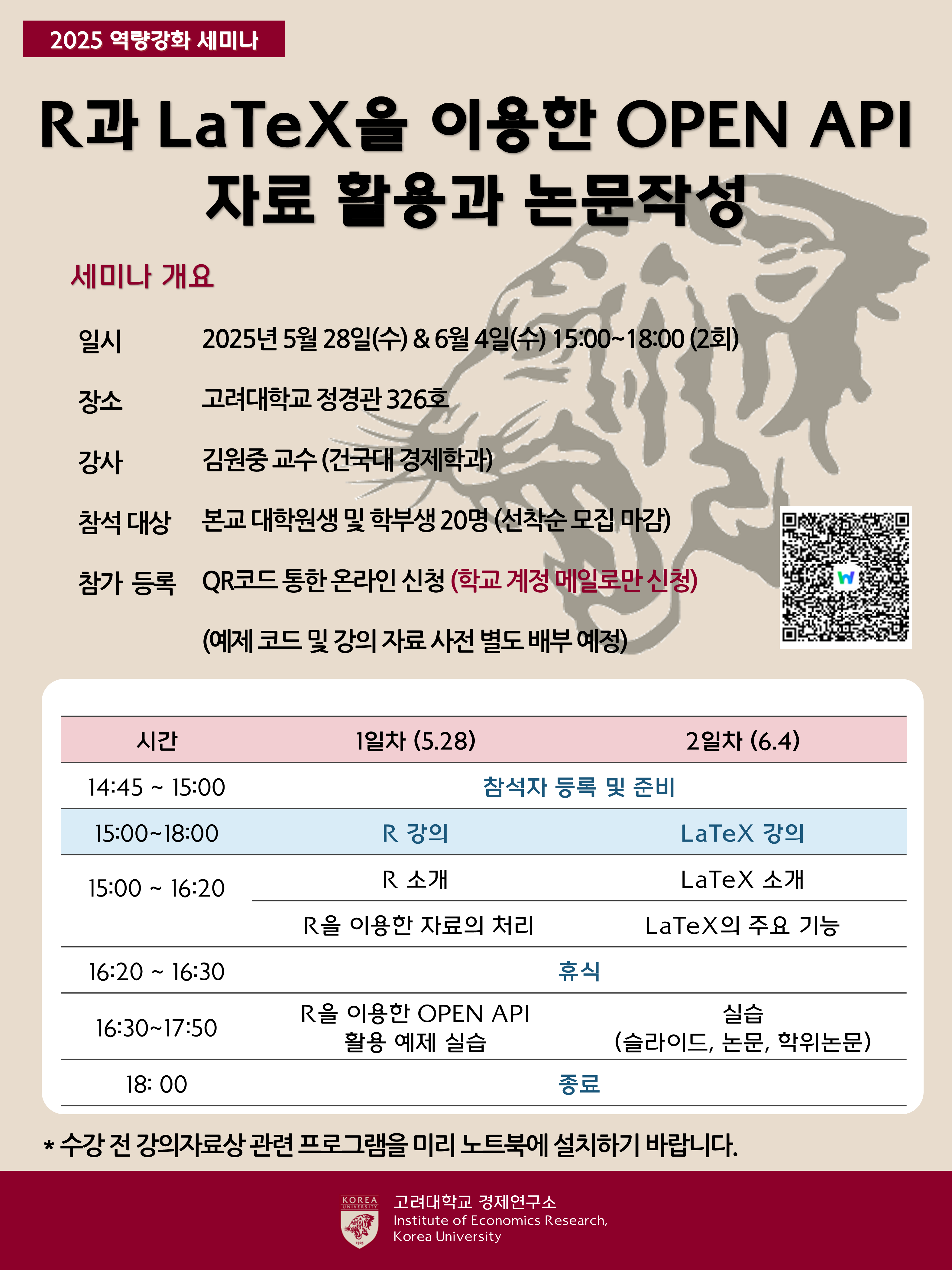 경제연구소 2025 역량강화 세미나가 아래와 같이 개최되오니 많은 참여와 관심 부탁드립니다.